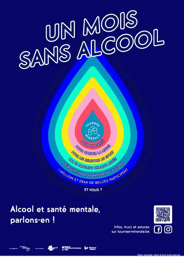 Les affiches/le guide, gratuits et téléchargeables ont été conçus en partenariat avec Univers Santé, coordinateur de la Tournée Minérale®, qui lançait la nouvelle campagne ce 1er février à Louvain-La-Neuve. Le slogan principal se veut mobilisateur : « Peu importe notre consommation, on a tous et toutes nos raisons d’y participer ».